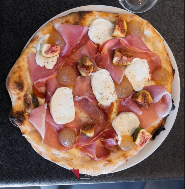 15,00 €Fior di latte, guanciale, pecorino, cipolle caramellate, pere cotte, olio evo, pepe nero.
