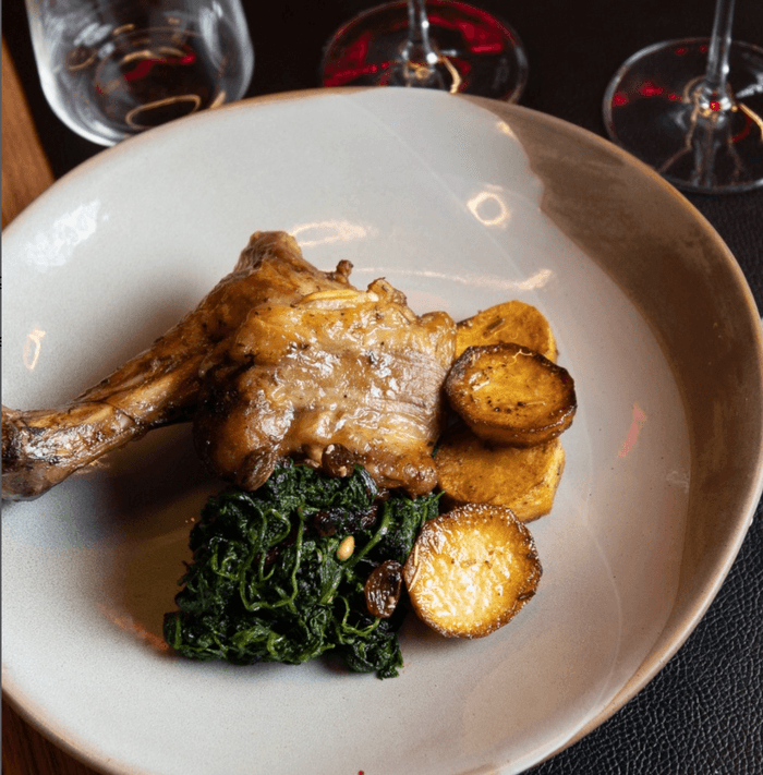25,00 €Filetto di manzo laccato alle erbe, salsa alle nocciole e indivia scottata.